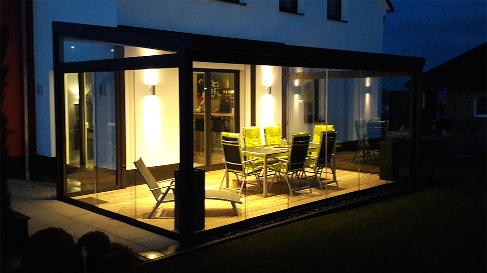 - Ein besonders gemütliches Ambiente gewinnen Sie in Ihrem Sommergarten mit geschickt platzierten Lichtakzenten und Beleuchtungsoptionen. Tauchen Sie Ihre Terrasse auch nach Einbruch der Dämmerung in warmes Licht und genießen Sie die Zeit in Ihrer Wohlfühloase bis in die späten Abendstunden.