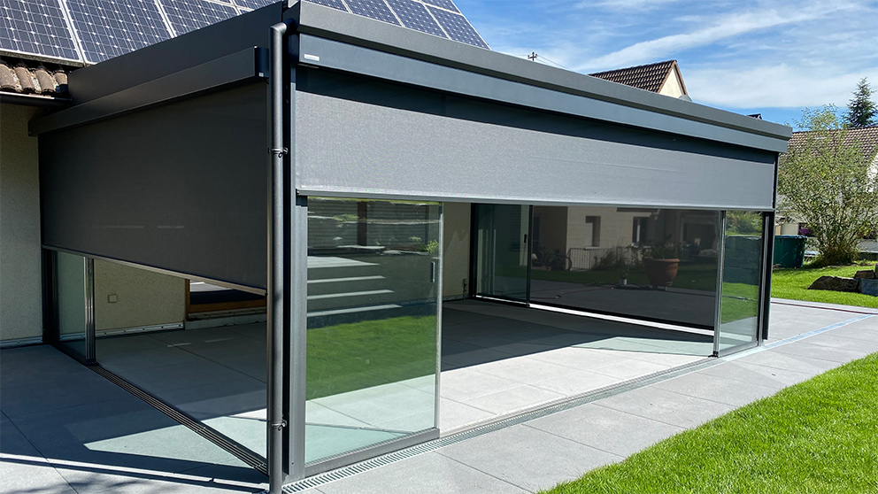 - Mit praktischen Sonnenschutzlösungen, wie Unterglas- oder Aufglasmarkisen, genießen Sie in Ihrem Sommergarten angenehmen Schatten und verbringen auch an heißen Tagen eine entspannte Zeit auf Ihrer Terrasse. So sind Sie vor starker Sonne geschützt und müssen dennoch nicht auf die freie Sicht in den Garten verzichten.